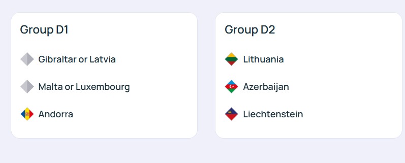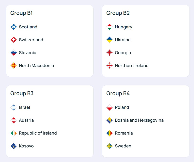 საქართველოს ნაკრები, რომელიც B დივიზიონში მე-3 კალათში იყო განთესილი, მეორე ჯგუფში, უნგრეთის, უკრაინისა და ჩრდ. ირლანდიის ნაკრებებთან ერთად იასპარეზებს. თამაშების ზუსტი კალენდარი სავარაუდოდ ხვალ დღის ბოლომდე გახდება ცნობილი. ჯგუფური ეტაპის მატჩები, 2026 წლის სექტემბერში, ოქტომბერსა და ნოემბერში გაიმართება.