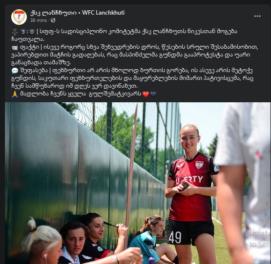 დღეს, ქალთა საფეხბურთო კლუბმა „ლანჩხუთმა", საკუთარი გულშემატკივრისთვის, სოციალურ ქსელში, როგორც ჩანს, მაინც გადაწყვიტა, თბილისში, ჩაშლილ მატჩზე კიდევ ერთხელ გაეკეთებინა განმარტება, რომელსაც უცვლელად გთავაზობთ: