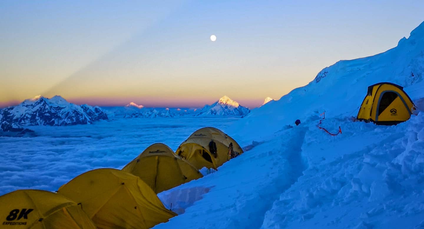 4 დღე - ღამისთევა ისევ მე-3 ბანაკში, მარტო ზევით წასვლა არ იქნებოდა კარგი , ჯერ არავინ ყოფილა C4 -ში, არც თოკებია და არც კვალი, ამიტომ ისევ 6800-ზე გავათიე და დავეშვი საბაზო ბანაკში 4700-ზე" , - წერს მთამსვლელი.