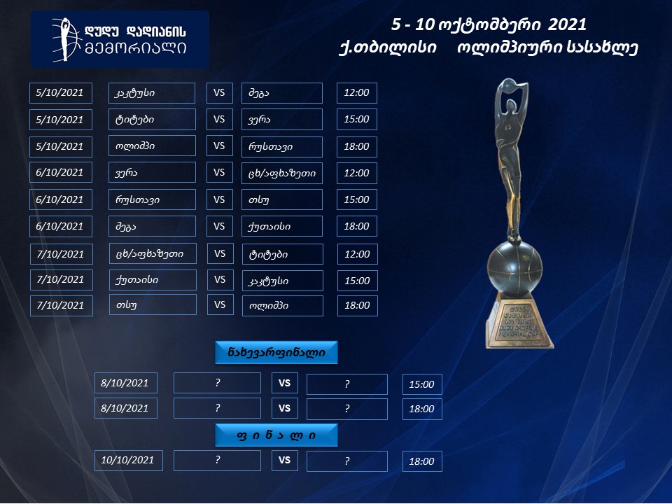 ხვალიდან, იწყება 2021-2022 წლების საკალათბურთო სეზონი, რომელიც ტრადიციულად დუდუ დადიანის მემორიალით გაიხსნება. კალათბურთის ეროვნული ფედერაციის ტრაგიკულად დაღუპული ვიცე-პრეზიდენტის ხსოვნის მემორიალი 5 ოქტომბერს, თბილისის ოლიმპიურ სასახლეში დაიწყება, რომელშიც მონაწილეობას სუპერლიგის 9 გუნდი მიიღებს.
