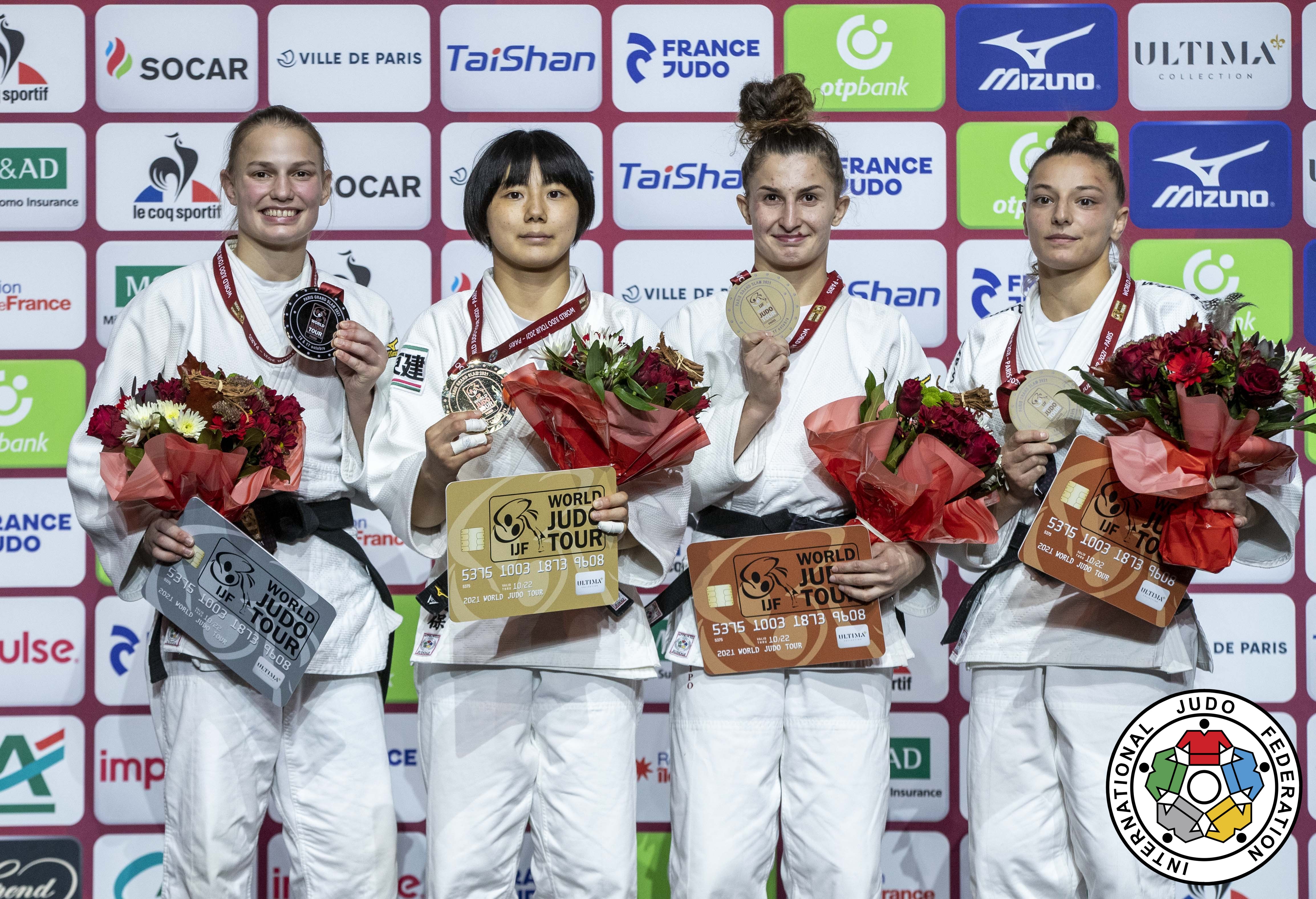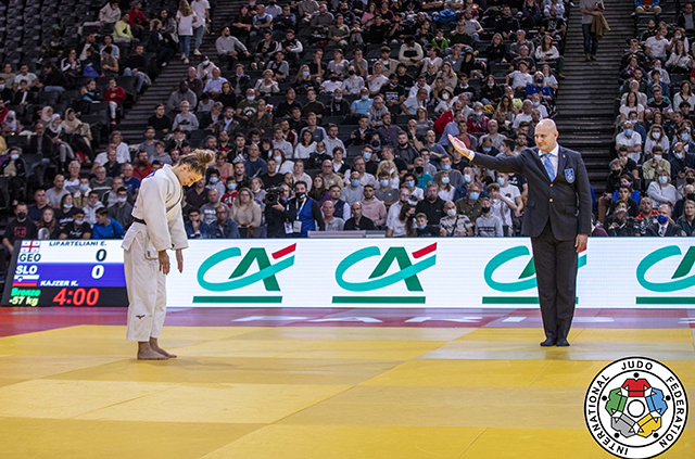 სამაგიეროდ, პირველი მედალი ქართული გუნდის ყულაბაში დღეს, ეთერ ლიპარტელიანმა ჩადო. მართალია ბრინჯაოსი, მაგრამ, როგორც ქართველი ძიუდოის ქალის გამოსვლისას რეპორტაჟის IJF-ის კომენტატორები აღნიშნავდნენ ის, ყოველ ტურნირზე უმატებს და ნელ-ნელა, ანგარისგასაწევი ძალა ხდება. ეთომ, ასპარეზობა მეორე წრიდან დაიწყო, თავდაპირველად, მავრიკი ქრისტიანა ლეჟონტყი 2:43 წუთზე, იპონით დაამარცხა და 1/4 ფინალში გავიდა. აქ, ტურნირის მასპინძელ, 20 წლის ფაიზა მოკდარ შეხვდა, რომელიც საბოლოოდ, პარიზის გრანდ სლემზე მე-5 ადგილს დასჯერდა, თუმცა, 1/2 გადასასვლელი ბრძოლა ეთოს ვაზარით მოიგო და ჩვენი ძიუდოისტი, რეპეშაჟიში გადაუშვა. აქ კი, ლიპარტელიანს ხასიათი „ჩაერთო" და ფრანგი პრისილა გიენტო, 2:19 წუთზე იპონით დაამარცხა. ბრინჯაოს მედლისთვის ეთო, სლოვაკ სპორტსმენს უნდა შეხვედროდა, თუმცა, მისი მოწინააღმდეგე, ტატამზე არ გამოცხადდა და ჩვენიანს ტექნიკური მოგება ჩაეწერა.