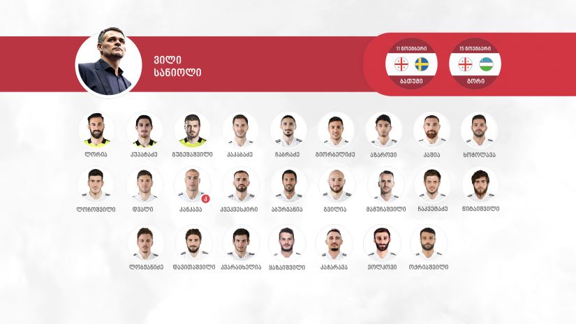 საქართველოს ნაკრების შემადგენლობა: