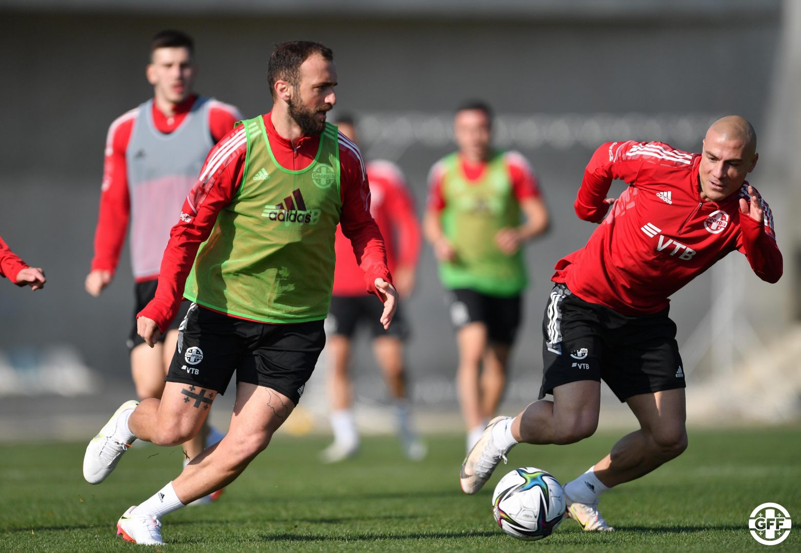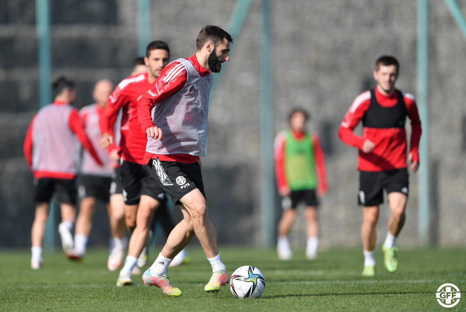 გუშინ და დღეს, საქართველოს ფეხბურთელთა ეროვნულმა ნაკრებმა, ჯერ არასრული, საწვრთნელ პროცესში 12 ფეხბურთელი მონაწილეობდა, შემდეგ კი, სრული შემადგენლობით (რადგან ლეგიონერები ლუკა ლოჩოშვილი, ლაშა დვალი, დავით ვოლკოვი, გურამ კაშია, ჯაბა კანკავა, ვაკო ყაზაიშვილი, გიორგი ლორია, დავით ხოჭოლავა, გიორგი ჩაკვეტაძე, ხვიჩა კვარაცხელია, ოთარ კაკაბაძე, ვაკო გვილია, ნიკა კაჭარავა გუნდს დღეიდან შეუერთდნენ) ივარჯიშა.