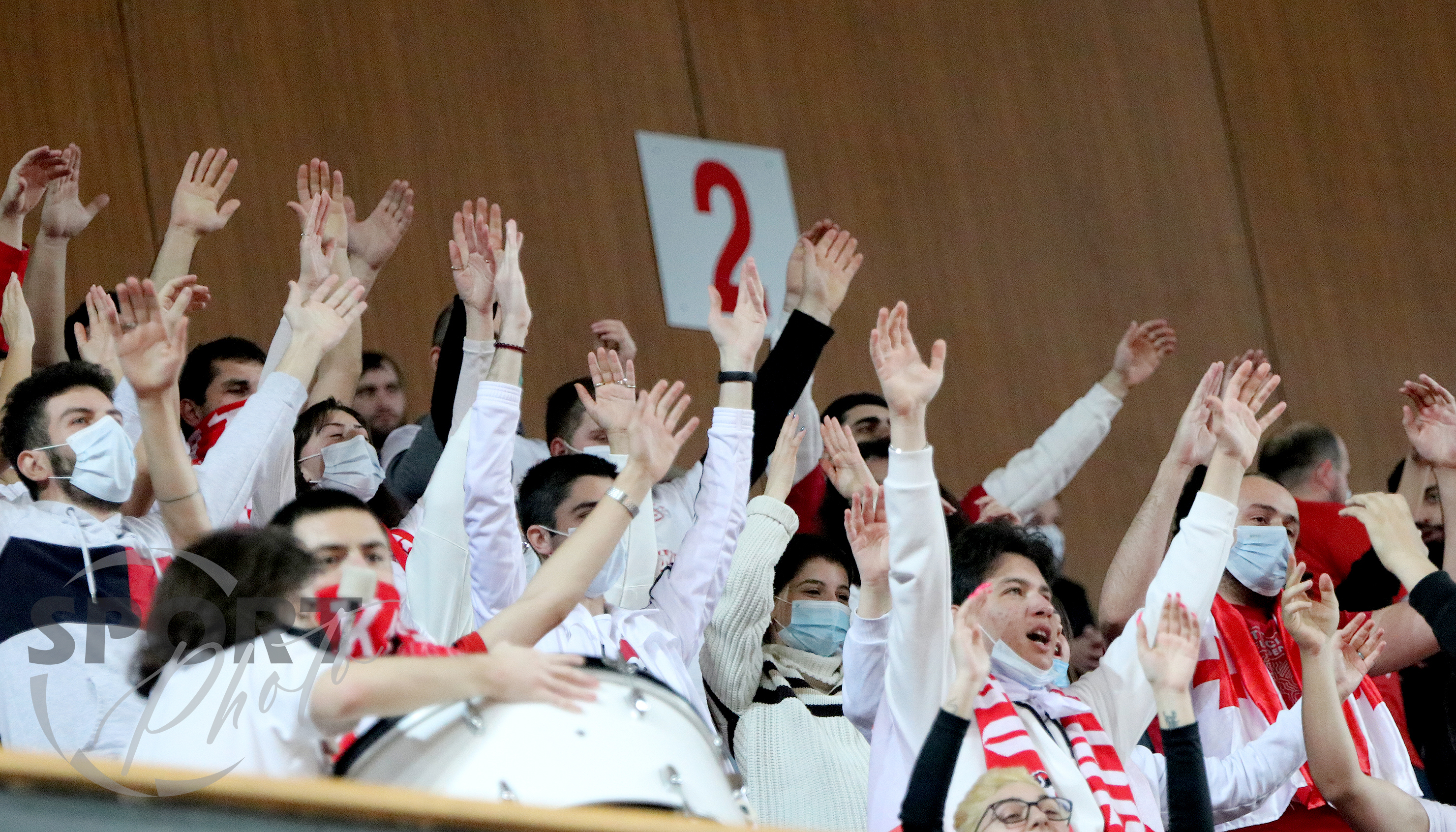 შეგახსენებთ, რომ კოვიდ-რეგულაციების გათვლით, შეხვედრაზე სპორტის სასახლის ტევადობის 30% იყო დაშვებული.