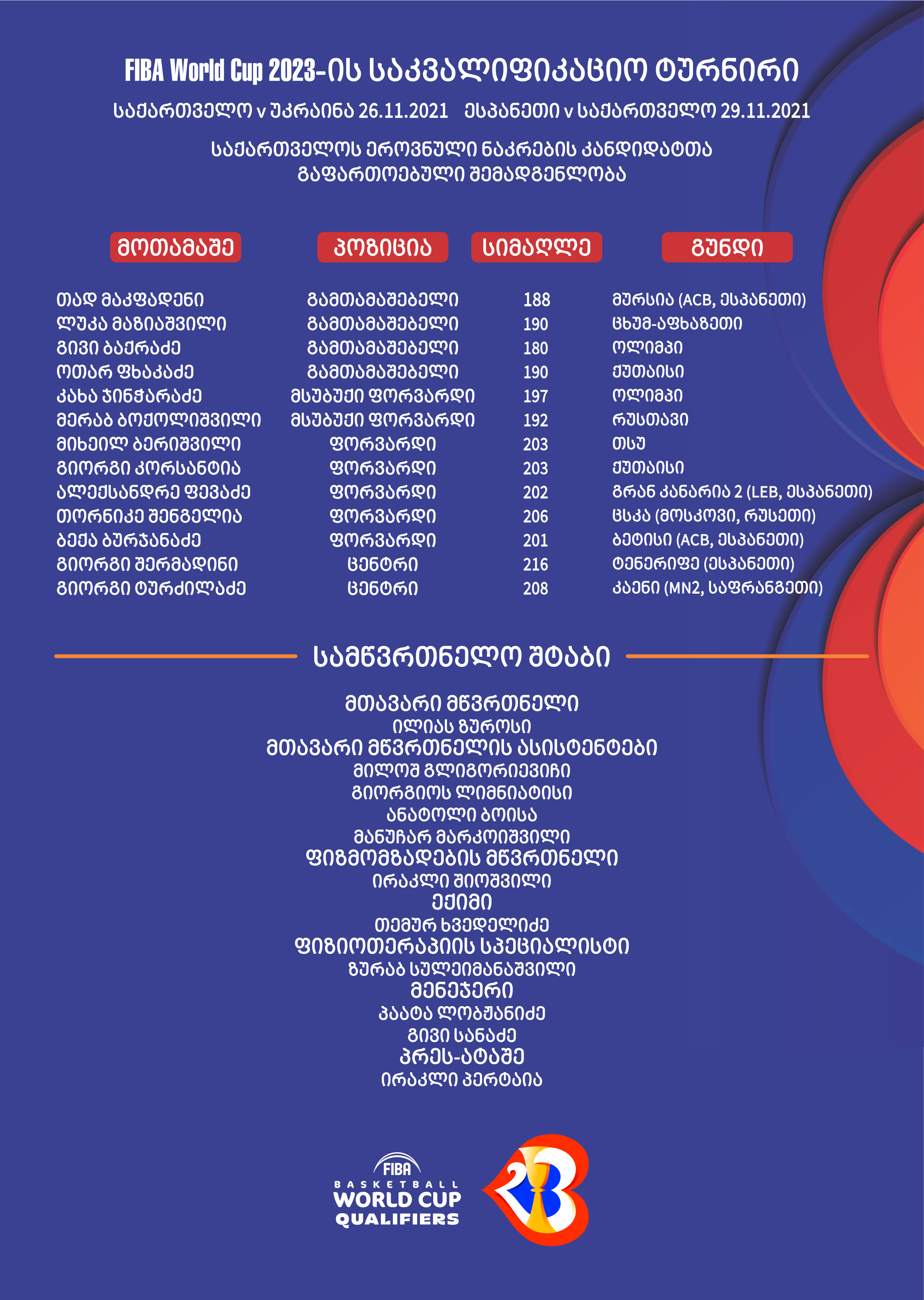 საქართველოს კალათბურთელთა ეროვნული ნაკრები ესპანეთშია. ჩვენი გუნდი ანდალუსიის პროვინციის მთავარ ქალაქში, 13 მოთამაშით ჩაფრინდა.