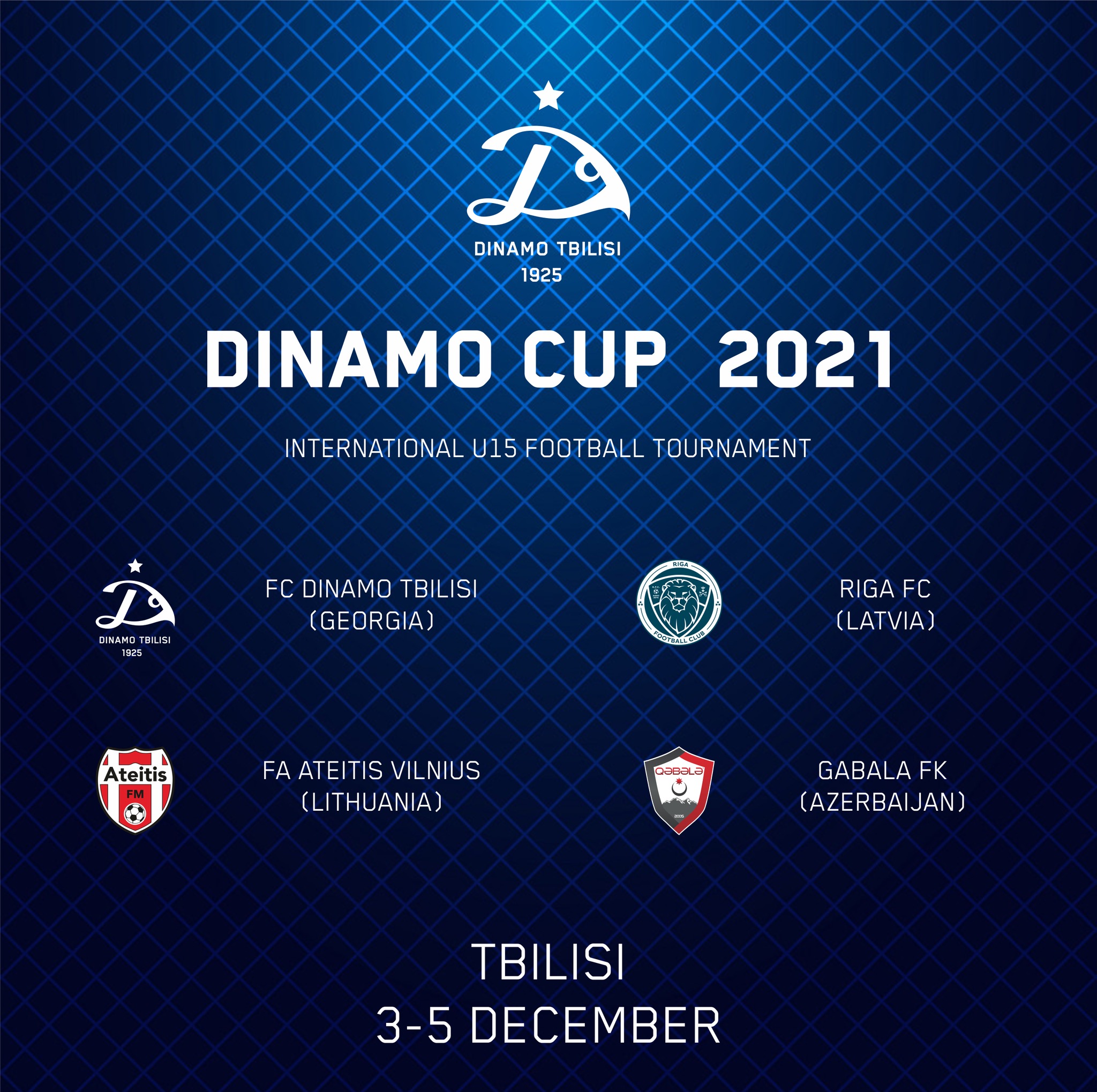 „დინამო თბილისის" აკადემია ახალ ტურნირს უყრის საფუძველს. 3-დან 5 დეკემბრის ჩათვლით აკადემიის მთავარ საფეხბურთო მოედანზე, 15-წლამდე გუნდებს შორის საერთაშორისო ტურნირს უმასპინძლებს. „დინამოს თასი 2021"-ში, მასპინძელი, „დინამო თბილისის" 15-წლამდე გუნდის გარდა, მონაწილეობას აზერბაიჯანის „გაბალა", ვილნიუსის „ატეიტისი" და რიგის „რიგა" მიიღებენ.