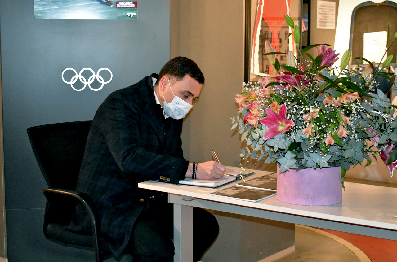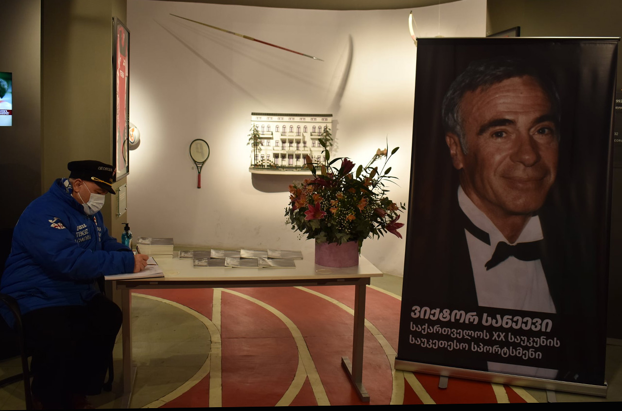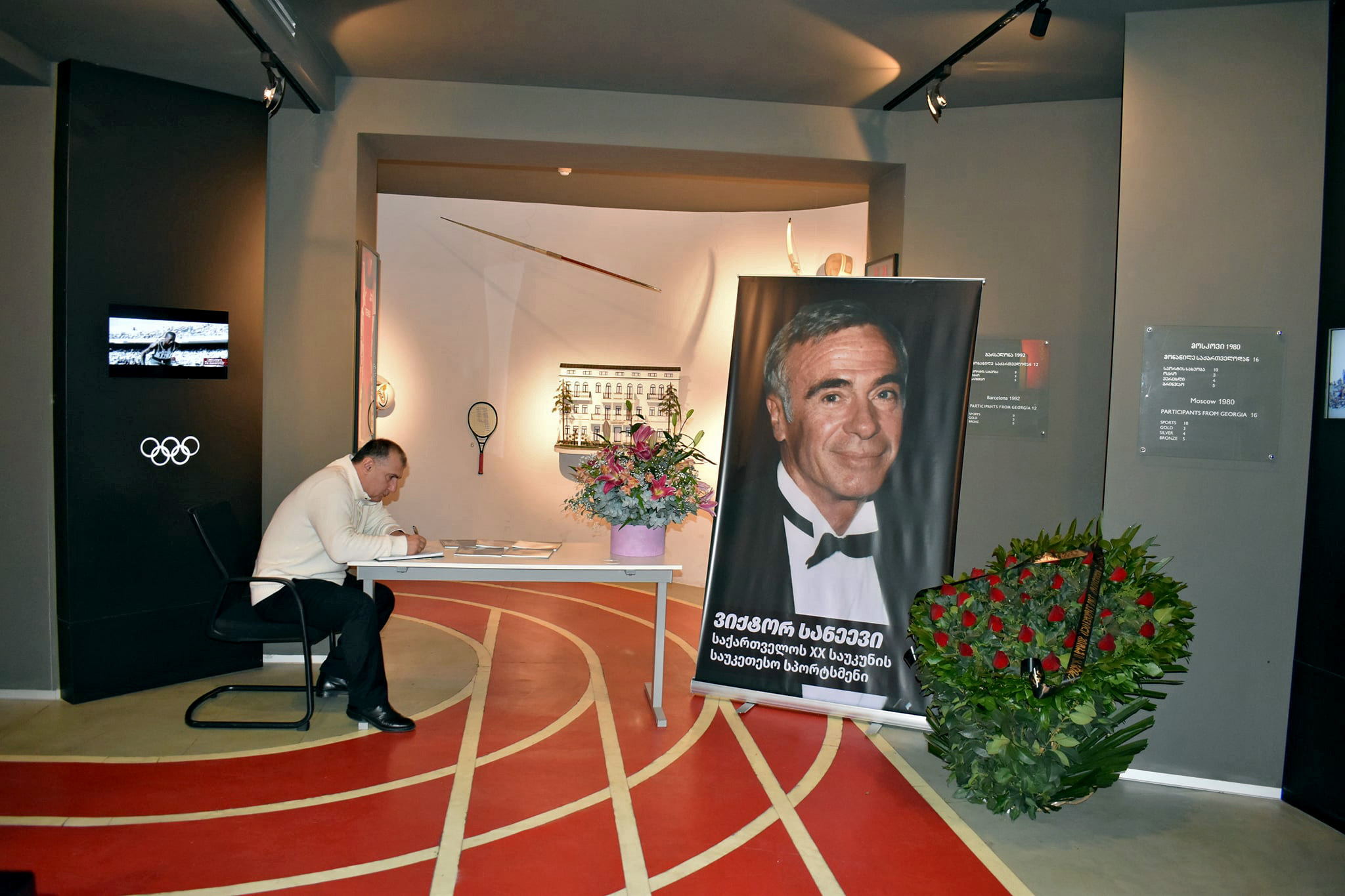 სამგლოვიარო გვირგვინით შემკული ვარსკვლავი და სპეციალური კუთხე სამძიმრის წიგნით - ადგილი, სადაც მთელი დღის მანძილზე ქართული სპორტის ქომაგები, სპორტის დამსახურებული მოღვაწეები, ოლიმპიელები, მედიის, ხელისუფლების წარმომადგენლები, რიგითი მოქალაქეები და რაღა თქმა უნდა მოქმედი სპორტსმენები ვიქტორ სანეევს ემშვიდობებოდნენ.