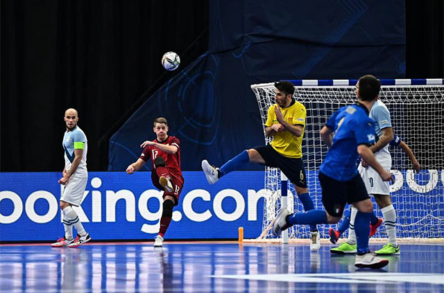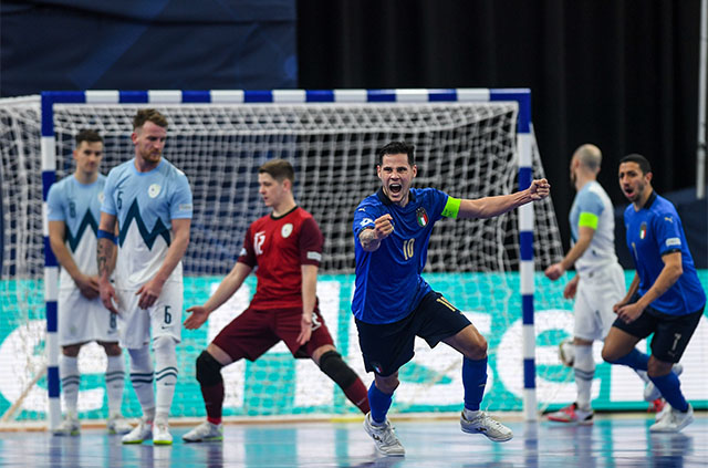 იტალიის ნაკრებს, რომელსაც მაქსიმალური რაოდენობის ჯარიმები ჰქონდა დაგროვებული, კიდევ უფრო გარისკა და შეხვედრის დასრულებამდე 6 წუთით ადრე, ზედმეტი მოთამაშით დაიწყო შეტევა. თუმცა, შეხვედრის დასრულებამდე 2 წამით ადრე, თავად გადაურჩა გოლს. მონაკვეთებში, როდესაც სლოვენიელები კონტრშეტევაზე გადმოდიოდნენ და იტალიაც პარკეტზე მეკარეს აბრუნებდა, ისევე, როგორც მთლიანად მატჩში, სკუადრა აძურას კარის მცველის, პიეტრო ანჯელოს კარგი თამაშის შედეგად, იტალიელთა კარში მხოლოდ, ორი გოლი გავიდა.