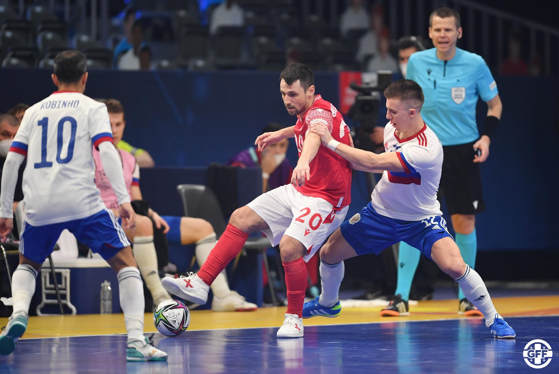 ანგარიში კი, საქართველოს ნაკრებისთვის კარგად ნაცნობმა არტიონ ნიაზოვმა (22'08'') გახსნა. ანგარიშის გასათანაბრებლად, საქართველოს ნაკრებს, ერთ წუთზე ოდნავ მეტი დასჭირდა. ელისანდროს გამჭოლი გადაცემის შემდეგ, ბრანკო პეტრიმ, კარის ძელთან კუთხე ჩაკეტა (23'40'') და ანგარიში გაათანაბრდა. სხვათა შორის, საქართველოს ნაკრებმა, კარგად მოახერხა მთელი მატჩის მანძილზე, ევრო 2022-ის ბომბარდირის, ანტოშკინის განეიტრალება, თუმცა, დუბლი, ჩემპიონატის კიდევ ერთმა გამორჩეულმა ფეხბურთელმა ივან ჩიშკალამ გაგვიტანა (27'32'', 39'54''), რომელსაც ისევე, როგორც ნიაზოვს, ევროპის ჩემპიონატის საკვალიფიკაციო ეტაპის შეხვედრებისას, ჩვენს კარში გატანილი ჰქონდა. თუმცა, რუსთა კაპიტანის ორ გოლს შორის, საქართველოს ნაკრებს, რამდენჯერმე არ გაუმართა, რამდენჯერმე კი, რუსეთის მეკარემ იხსნა საკუთარი გუნდი. ისევე, როგორც შეხვედრის დამთავრებამდე, 22 წამით ადრე, როდესაც ჩვენი ნაკრები ე.წ ზედმეტი მოთამაშის გათამაშებას ცდილობდა, არჩილ სებისკვერაძის და ბრანკო პეტრის სახიფათო დარტყმები რუსეთის ნაკრების მეკარემ ზედიზედ მოიგერია, რის შემდეგაც ჩიშკალამ, მესამე შეხვედრის ბოლო გოლი, ცარიელ კარში გაიტანა. მატჩი, 3-1 დასრულდა, რუსეთის გამარჯვებით და შემდეგ ეტაპზეც, ჩვენი მოწინააღმდეგე გავიდა.