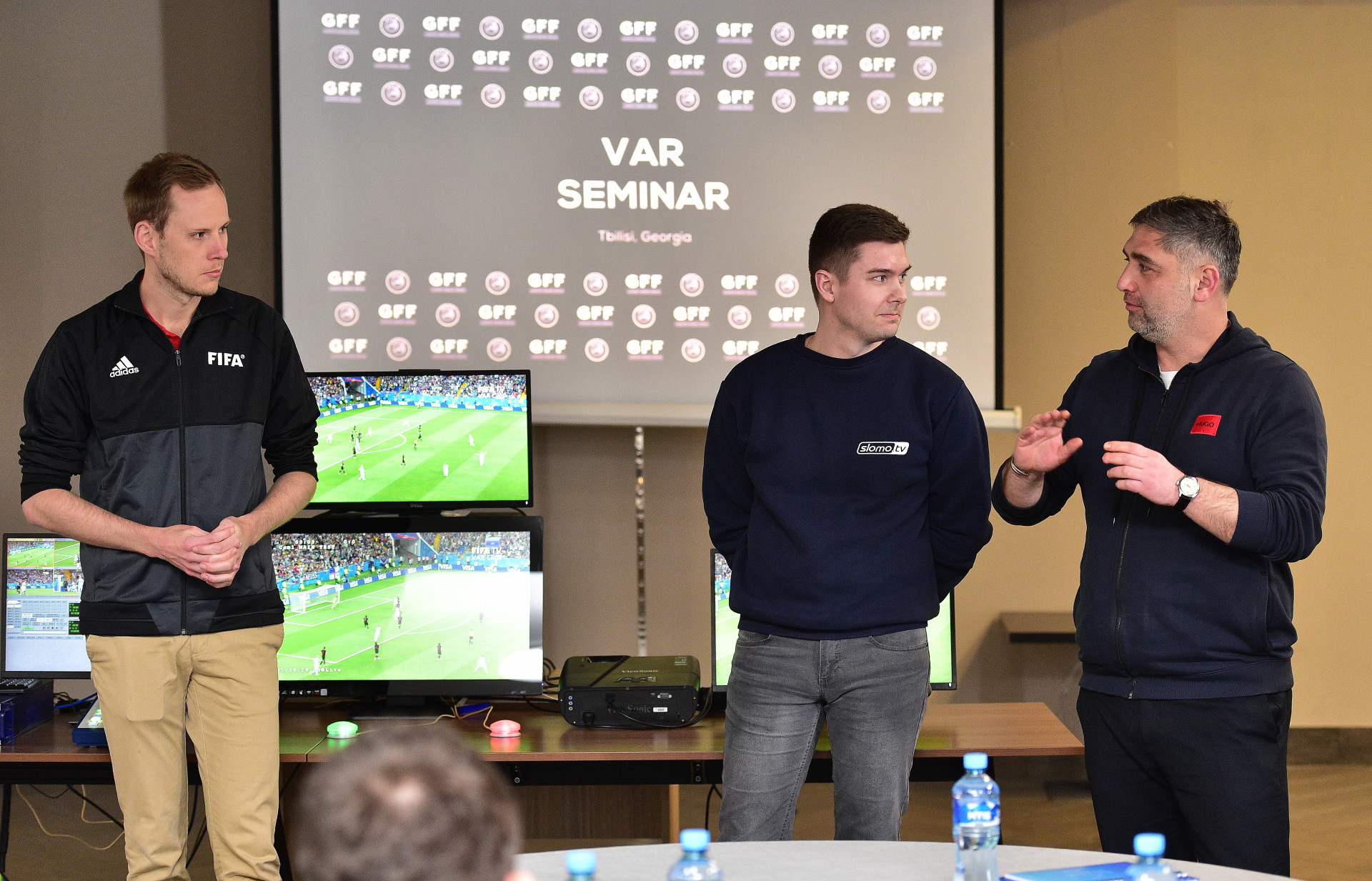 გიორგი ვადაჭკორია (VAR-ის პროექტის ხელმძღვანელი): „დაიწყო ამ უმნიშვნელოვანესი პროექტის მეორე ნაწილი. სემინარის ფარლგებში, ინსტრუქტორი აუხნის მსაჯებს, კონკრეტულად რა ეპიზოდებში ერთვება ვიდეორეფერი თამაშში. აქ წარმოდგენილი მსაჯები კანდიდატები არიან და თავის გამოჩენის შემთხვევაში ფიფას წარმომადგენლების მიერ მოხდება ლიცენზიების გაცემა".