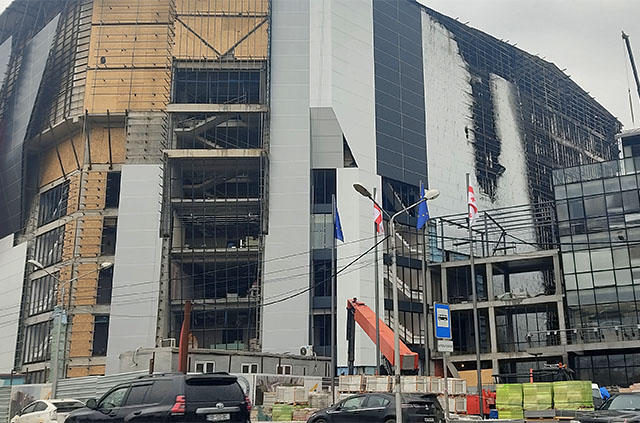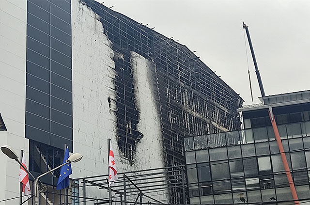 ეს არის ფოტო ხანძრის შემდეგ გადაღებული, მეორე კი, დღეს. ფასადური ნაწილის აღდგენის პარალელურად, არ ჩერდება სამუშაოები უშუალოდ დარბაზში.