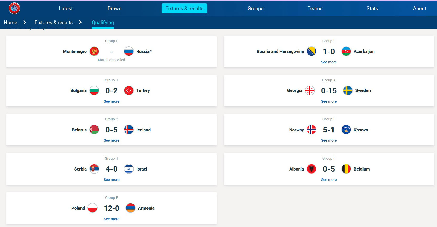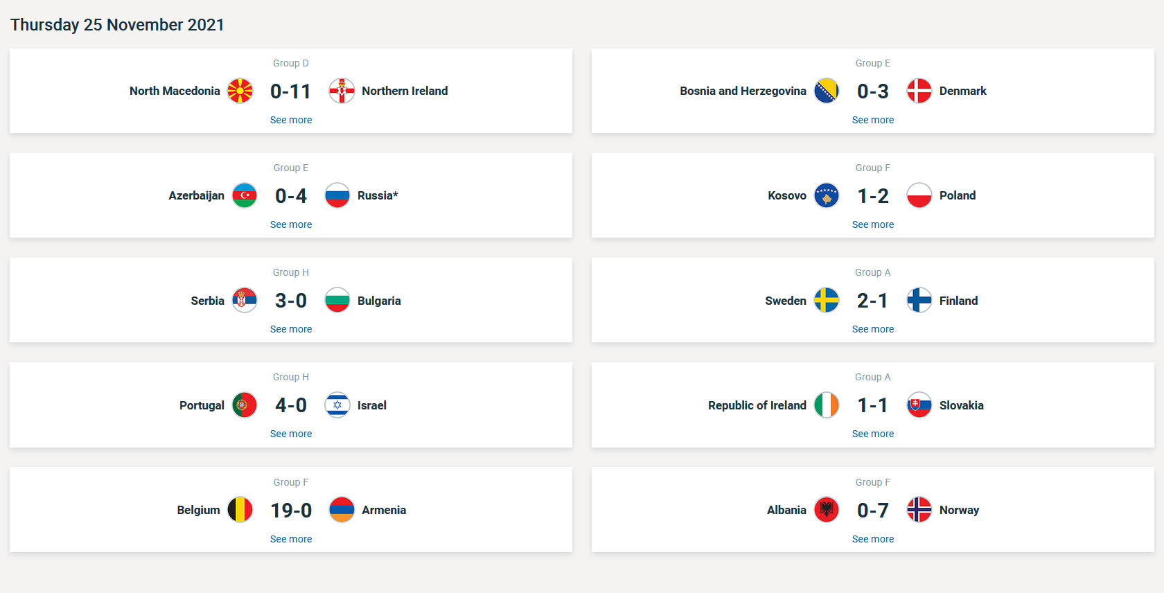 აქვე გთავაზობთ, მიმდინარე მსოფლიოს შესარჩევის რამდენიმე ტურის ანგარიშებს, უბრალოდ, ხაზის გასავლებად და სანახავად, რომ 15 გოლზე მეტიც გადის, ქალთა თამაშებში, რომელიც ვაჟთა მატჩებისგან ბევრი რამით განსხვავდება...