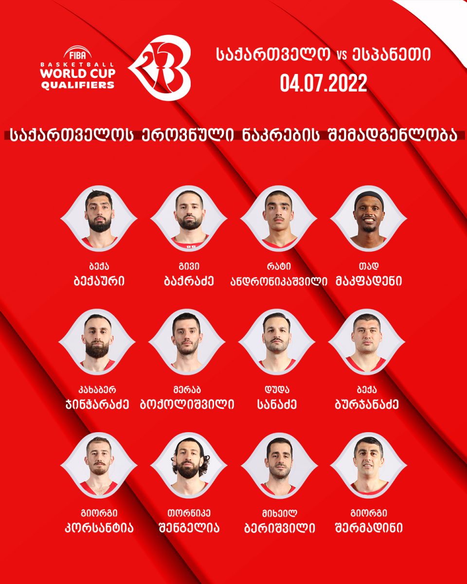ესპანეთის ნაკრებმა კი, რომელმაც 4 ივლისს, ჩრდ. მაკედონიის გუნდი გაანადგურა, ექსპერიმენტული შემადგენლობით ჩამოიყვანა თბილისში. ხვალინდელ მატჩში, სერჟიო სკარიოლომ ევროლიგის გუნდების წარმომადგენლები, მათ შორის „რეალისა" და „ბარსელონას" კალათბურთელები არ ჩამოიყვანა. ესპანეთის ნაკრებს თბილისში ვერც NBA-ის წარმომადგენლები დაეხმარებიან.
