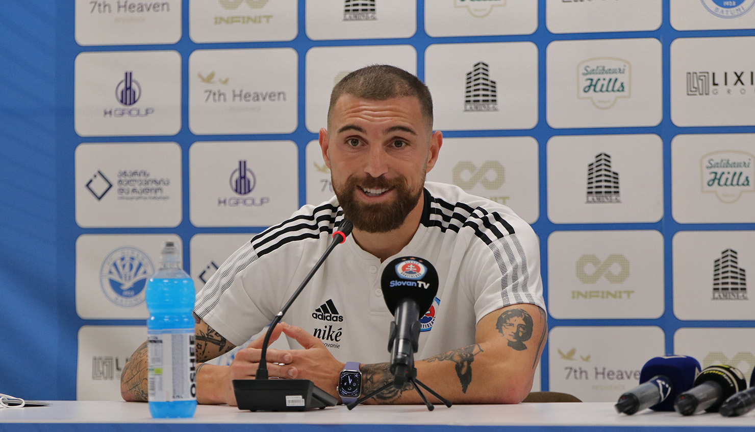 ბათუმში, აჭარაბეთ არენაზე, უეფა-ს ჩემპიონთა ლიგის ხვალინდელი მატჩის წინ პრეს-კონფერენციაზე, სლოვაკურმა კლუბმა „ჩვენები" წარმოადგინა. საქართველოს ეროვნული ნაკრების ყოფილმა მთავარმა მწვრთნელმა, ვლადიმირ ვაისმა, თან, ჩვენი ნაკრების კაპიტანი, გურამ კაშია იახალა. გუნდის სამწვრთნელო შტაბში კი, ამ დღეს, ბევრი იყო, ხალხი, რომლებიც წლების მანძილზე ჩვენს ეროვნულ ნაკრებთან მუშაობდნენ.