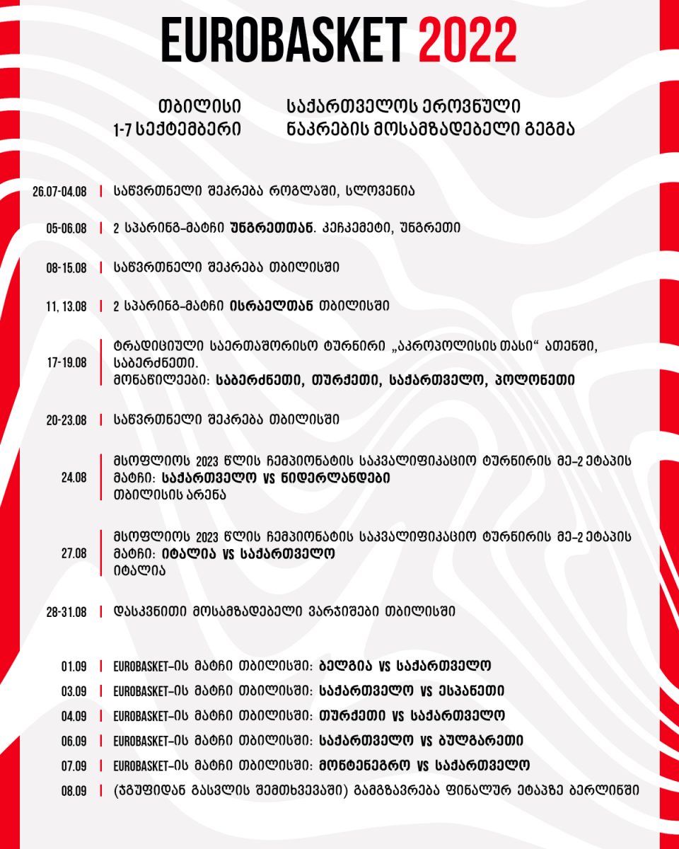 საქართველოს კალათბურთის ეროვნული ნაკრების აგვისტოს თამაშების კალენდარი: