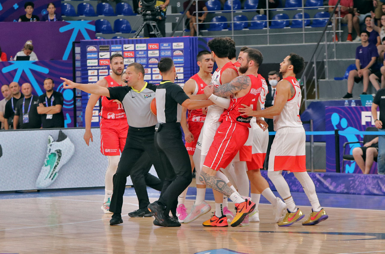 ევრობასკეტი 2022-ის მესამე საასპარეზო დღის დასასრული დაძაბული გამოდგა „თბილისი არენაზე". საქართველოსა და თურქეთის ეროვნული ნაკრებების მსვლელობისას მოხმდარ სათამაშო ინციდენტს, მხედველობაში ფურქან ქორქმაზისა და დუდა სანაძის დაპირისპირება გვაქვს, რის შემდეგაც, ორივე გუნდის მოთამაშე თამაშიდან გააძევეს (კალათბურთში ასეთი რამ საკმაოდ იშვიათად ხდება და ალბათ, ფიბა-ს სადისციპლინო კომიტეტის განხილვის საგანიც გახდება), თურქები ირწმუნებიან, რომ მათ მოთამაშეს, დერეფანში თავს საქართველოს ნაკრების კალათბურთელები და დაცვის წევრები თავს დაესხნენ. ამის შესახებ, თურქეთის ნაკრების მწვრთნელის ასისტენტმა ჰაქან დემირიმ მატჩის შემდგომ პრესკონფერენციაზე განაცხადა.