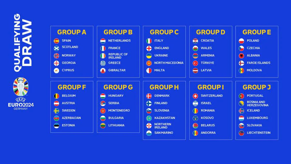 წილისყრის შემდეგ შვიდ ჯგუფში ხუთი-ხუთი ნაკრები გადანაწილდა, საქართველოს ნაკრები, 5-გუნდიან ჯგუფში მოხვდა. კიდევ სამი ჯგუფი ექვსი ნაკრებისგან დაკომპლექტდა. „ევრო 2024"-ზე ასპარეზობის უფლებას, რომელიც გერმანიის 10 ქალაქში გაიმართება აღნიშნული საკვალიფიკაციო ეტაპიდან 20 გუნდი გააგრძელებს. ევროპის 2024 წლის ჩემპიონატის საკვალიფიკაციო ჯგუფური ეტაპი 2023 წლის 23 მარტს დაიწყება და 21 ნოემბერს დასრულდება. აღსანიშნავია, რომ უეფა-ს ერთა ლიგის საკვალიფიკაციო ეტაპის ფლეი-ოფში გასული 12 ნაკრებიდან, სამი ფინალური ეტაპის საგზურს მიიღებს.