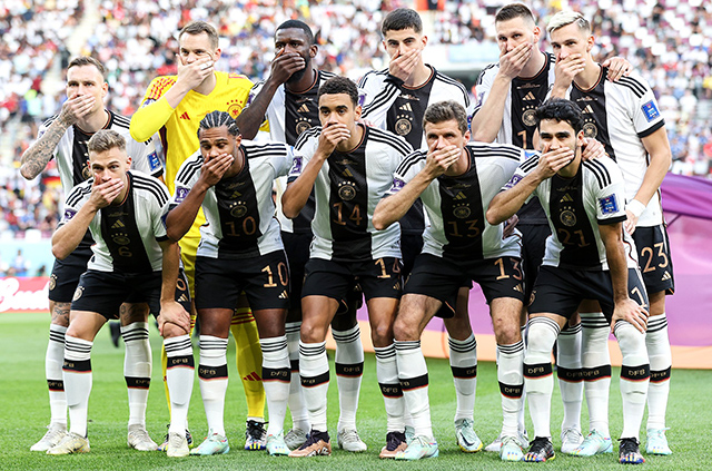 მაგალითად, გუნდების (ძირითადად ევროპულ ნაკრებებს) კაპიტნებს აუკრძალეს One Love-ის (ერთი სიყვარული) კაპიტნის სამკლაურების ტარება. არადა, ეს სამკლაური, ყველა სახის დისკრიმინაციის წინააღმდეგ ბრძოლის სიმბოლო უნდა გამხდარიყო. მიუხედავად იმისა, რომ აღნიშნული კამპანია, რომელიც გასულ წელს დაიწყო, ნიდერლანდების საფეხბურთო ასოციაციის ინიციატივა იყო და რეალურად ჩაიშალა, თავად ნიდერლანდელების მხრივ იმ დოზით არ ყოფილა გაპროტესტებული, როგორც ეს გერმანელებმა გაბედეს. ერთადერათი, ვინც ეს აკრძალვა ოფიციალირად სავსე სტადიონის წინ გააპროტესტა მხოლოდ, გერმანიის ნაკრები იყო. მათ, ეს პროტესტი პირზე ხელის აფარებით გამოხატეს, თუმცა, შემდეგ, თამაშისას, იაპონიის ნაკრებთან „მანუს", ქულის ასაღებად, სწორედ იმ ხელის გაშვერა დააკლდა...