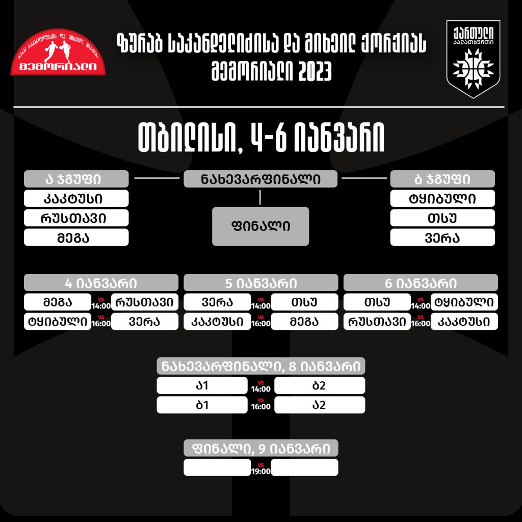 დღეს, თბილისის ოლიმპიურ სასახლეში სტარტი აიღო ქართველი ოლიმპიური ჩემპიონების ზურაბ საკანდელიძისა და მიხეილ ქორქიას სახელობის მემორიალმა. რიგით მე-18 ტურნირში, რომელიც ტრადიციულად ყოველწლიურად იმართება, 2022-2023 წლების გათამაშებაში მხლლოდ ექვსი გუნდი მონაწილეობს, რომელთა შორის ხუთი, „მეგა", „რუსთავი", „ვერა", „კაკტუსი" და თსუ სუპერლიგის წარმომადგენლები არიან, ხოლო ტყიბულის „ორბი", "ა" ლიგის გათამაშების წარმომადგენელია.