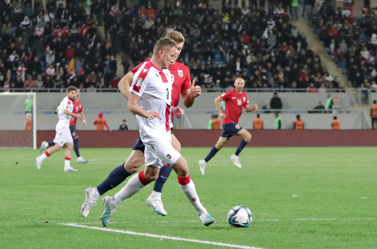 ალბათ, უნდა აღინიშნოს, რომ ქართველთა გუნდს, თამაშის სტარტიდან ემჩნეოდა ნერვიულობა და ეს განწყობა, გუნდს ფონად, თითქმის მთელი პირველი ტაიმი გაჰყვა. ნორვეგიელებმა და მხოლოდ იმიტომ არა, რომ მე-15 წუთზე ალექსანდერ სიორლოტისმა გოლი გაგვიტანა, პირველ ტაიმში აშკარად გვაჯობეს. ამასთან, კარგად აკონტროლეს ქართველა გუნდის ლიდერი ხვიჩა კვარაცხელია, რომელმაც ამისად მიუხედავად, მატჩის დამთავრების შემდეგ, საქართველოს ნაკრებიდან ერთ-ერთი ყველაზე მაღალი შეფასება მიიღო.