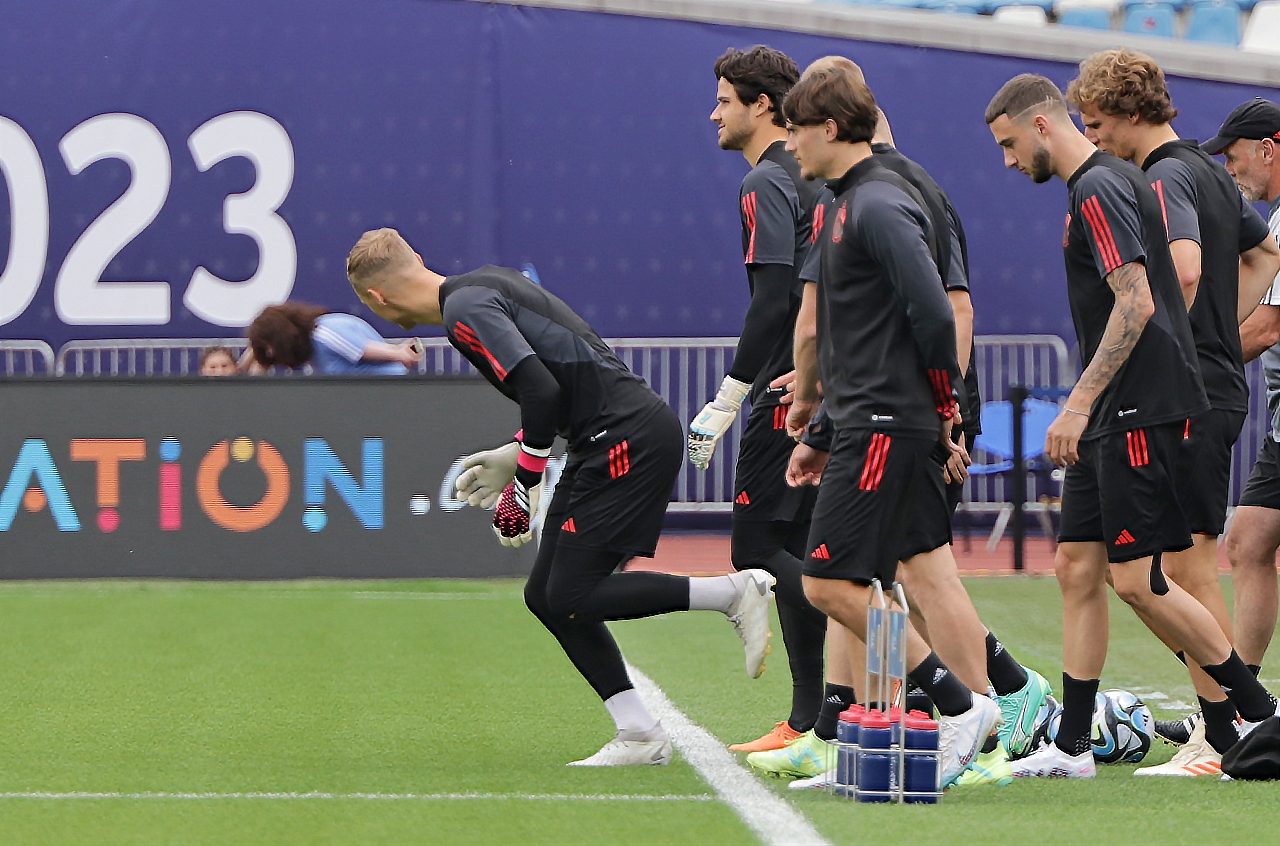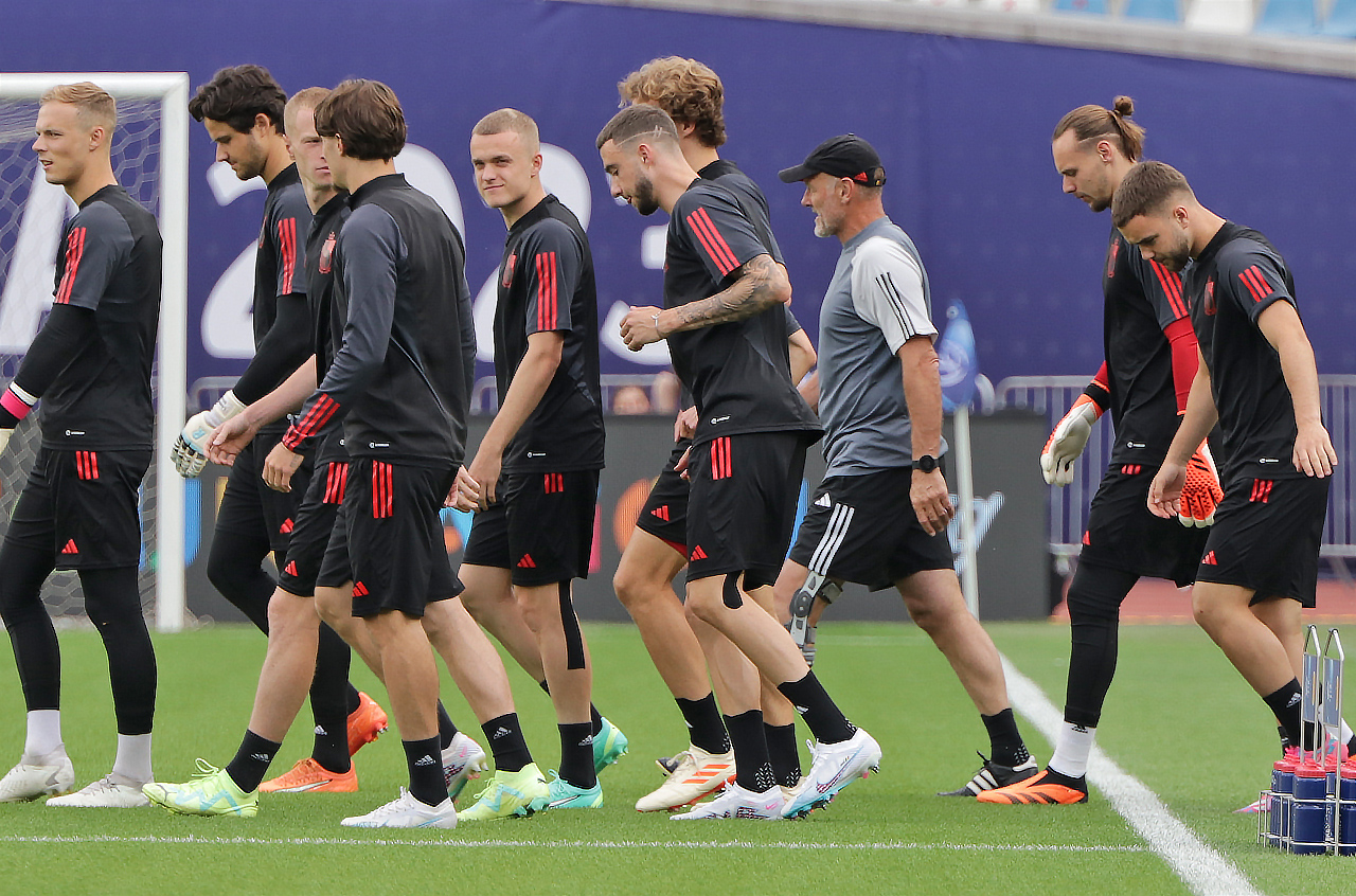ხვალამდე კი, დღეს, ბელგიის ახალგაზრდულმა ნაკრებმა, „დინამო არენაზე" კუთვნილი 1 საათი ივარჯიშა. მინდორზე გასვლამდე, გუნდი ერთად შეგროვდა და მხოლოდ, ამის შემდეგ გავიდა სავარჯიშოდ. მინდორზე შესვლისას, რამდენიმე შეეცადა მარჯვენა ფეხით შესულიყო, ამასთან ფეხზე სამჯერაც შეხტა და ისე გაემართა მინდვრის ცენტრისკენ.