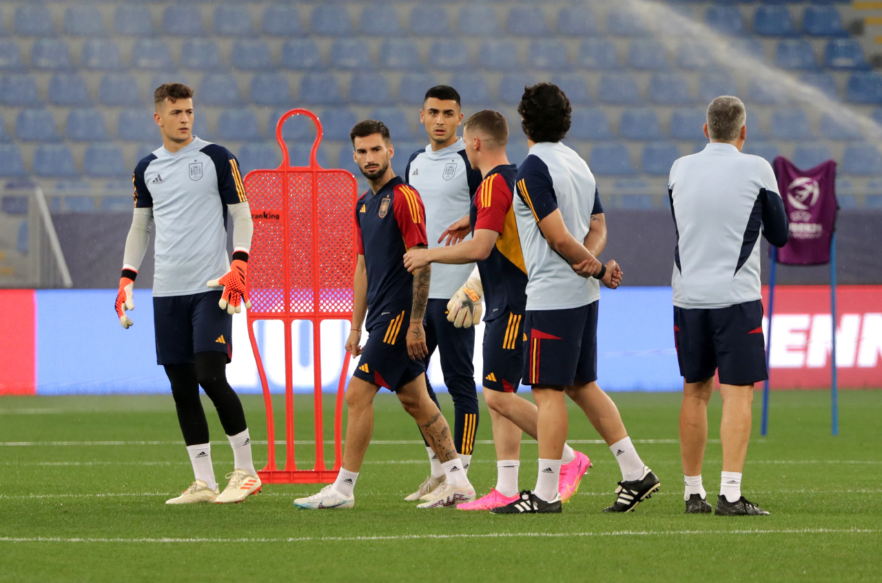 სამწუხაროდ, ჩვენ ინგლისის ნაკრების ვარჯიშზე და პრეს-კონფერენციაზე მოხვედრა ვერ მოვასწარით, თუმცა, ესპანელების „მატჩისდღე1"-ს დავესწარით. ვინც, მიმდინარე ჩემპიონატს თვალს ადევნებს, გემახსოვრებათ რამდენიმე დღის წინ, ბათუმური 1/2 ფინალის პირველი ტაიმის მიწურულს როგორც იდგნენ, ამ სიტყვის სრული გაგებით ინგლისისა და ისრაელის ნაკრებები. ვერ გეტყვით, „ბათუმი არენა" მოქმედებს ასე თუ არა, მაგრამ დღეს, ესპანეთის ნაკრები მატჩის წინა ვარჯიშზე, მედიისთვის დაშვებული მთელი 15 წუთის მანძილზე, მინდორზე უბრალოდ იდგნენ, ან სეირნობდნენ ან სარეკლამო დაფებს უშენდნენ ბურთს. სულ ბოლოს „კვადრატი" ივარჯიშეს და ჩვენი დროც ამოიწურა. თუმცა მანამდე, ესპანეთის ნაკრების მთავარმა მწვრთნელმა სანტი დენიამ მედიის კითხვებს უპასუხა.