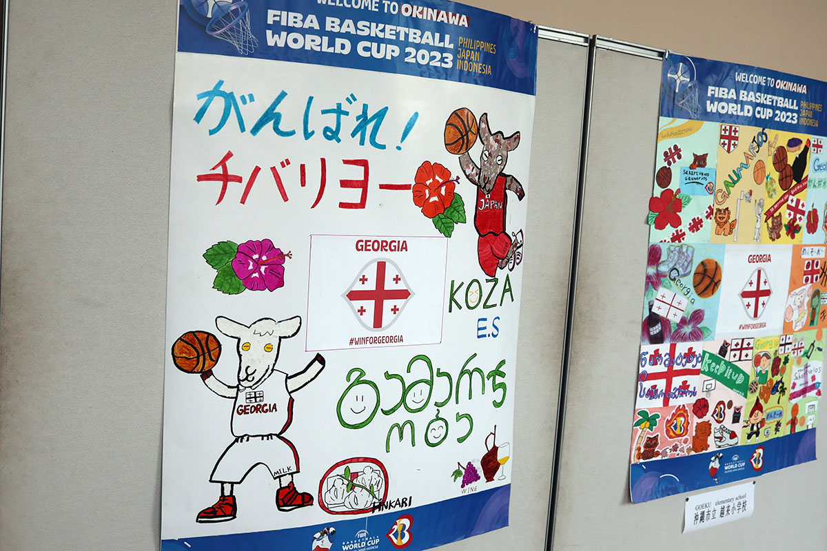 სასიამოვნო სიურპრიზი დაახვედრეს საქართველოს ნაკრებს ოკინავას ორის სკოლის, კოზასა და გოეკუს მოსწავლეებმა. მათ, ჩვენს გუნდს დარბაზისკენ მიმავალ დერეფანში ქართულ ენაზე დაწერილი ე.წ კედლის გაზეთები დაახვედრეს, სადაც ჩვენებს წარმატება უსურვეს და ჩეპიონატის ჯგუფური თამაშების დროს მატჩებზე დასწრებასა და მხარდაჭერას დაჰპირდნენ. საქართველოს კალათბურთის ეროვნული ფედერაციის ცნობით, „ეს გახლავთ ერთგვარი გაცვლითი პროგრამა, რომელშიც იაპონელებმა ადგილობრივ საორგანიზაციო კომიტეტს შესთავაზეს და რომლის მიხედვითაც ოკინავაში ჩასულ ყველა ნაკრებს ეყოლება საკუთარი ქომაგები ქალაქის სკოლების მიხედვით. ამ სკოლის ბავშვები წინასწარ სწავლობენ იმ ქვეყნის ნაკრების ენასა და კულტურას, რომელსაც უნდა უქომაგონ. ბავშვები ასევე დაესწრებიან საკუთარი საქომაგო გუნდის ვარჯიშს და ენებათ მოთამაშეებთან ინტერაქცია. საქართველოს ნაკრების წევრებს იაპონელ ბავშვებთან შეხვედრა 21 აგვისტოს ელით".