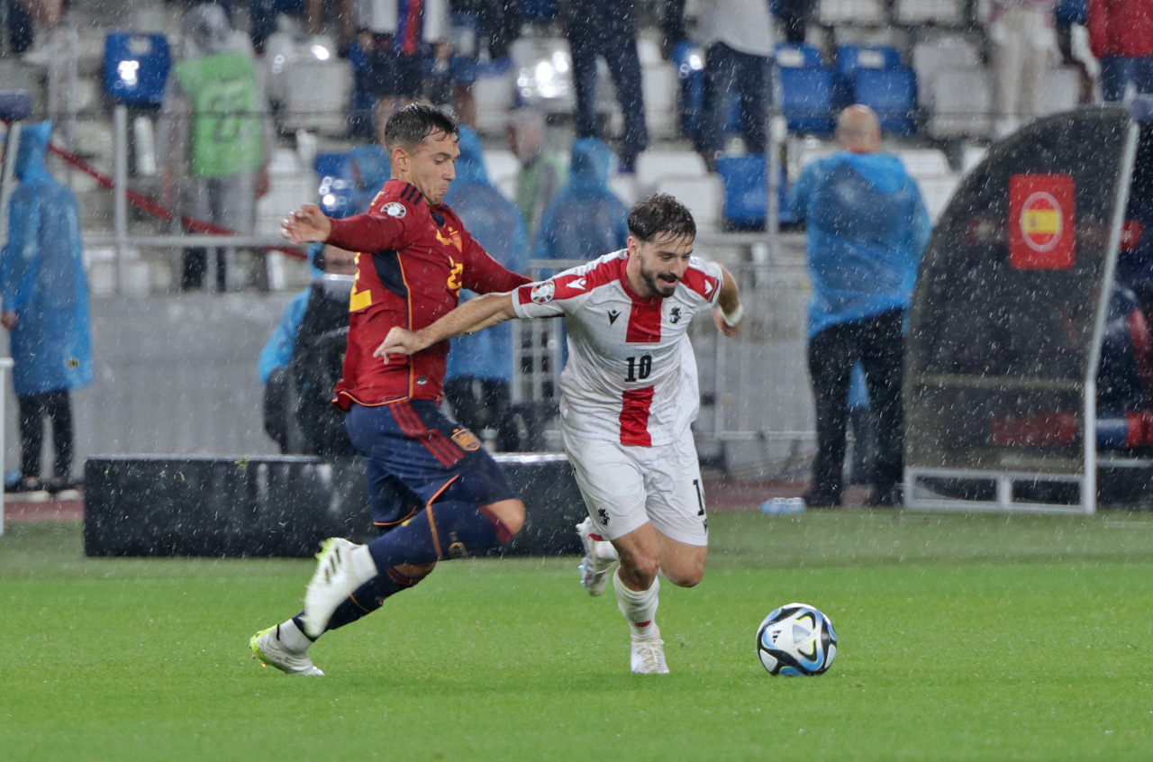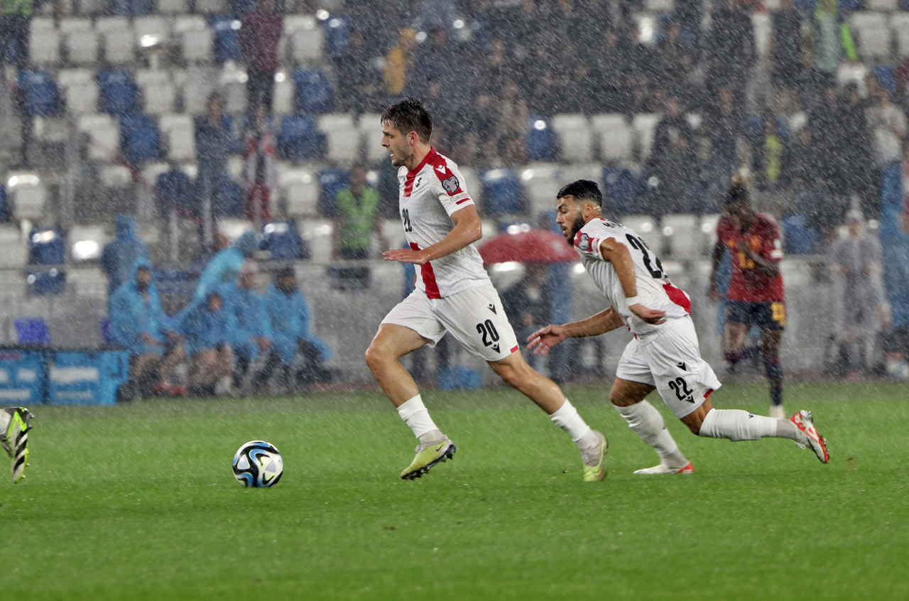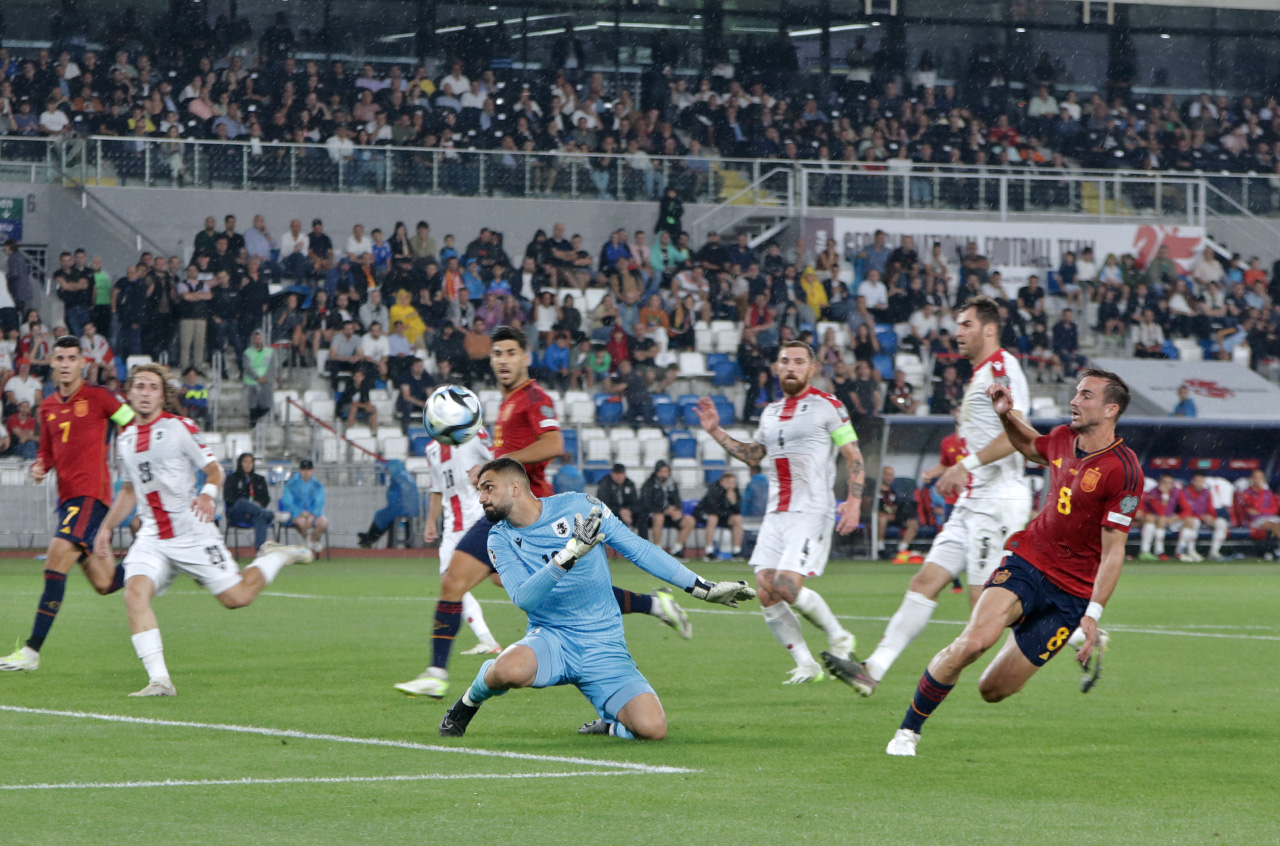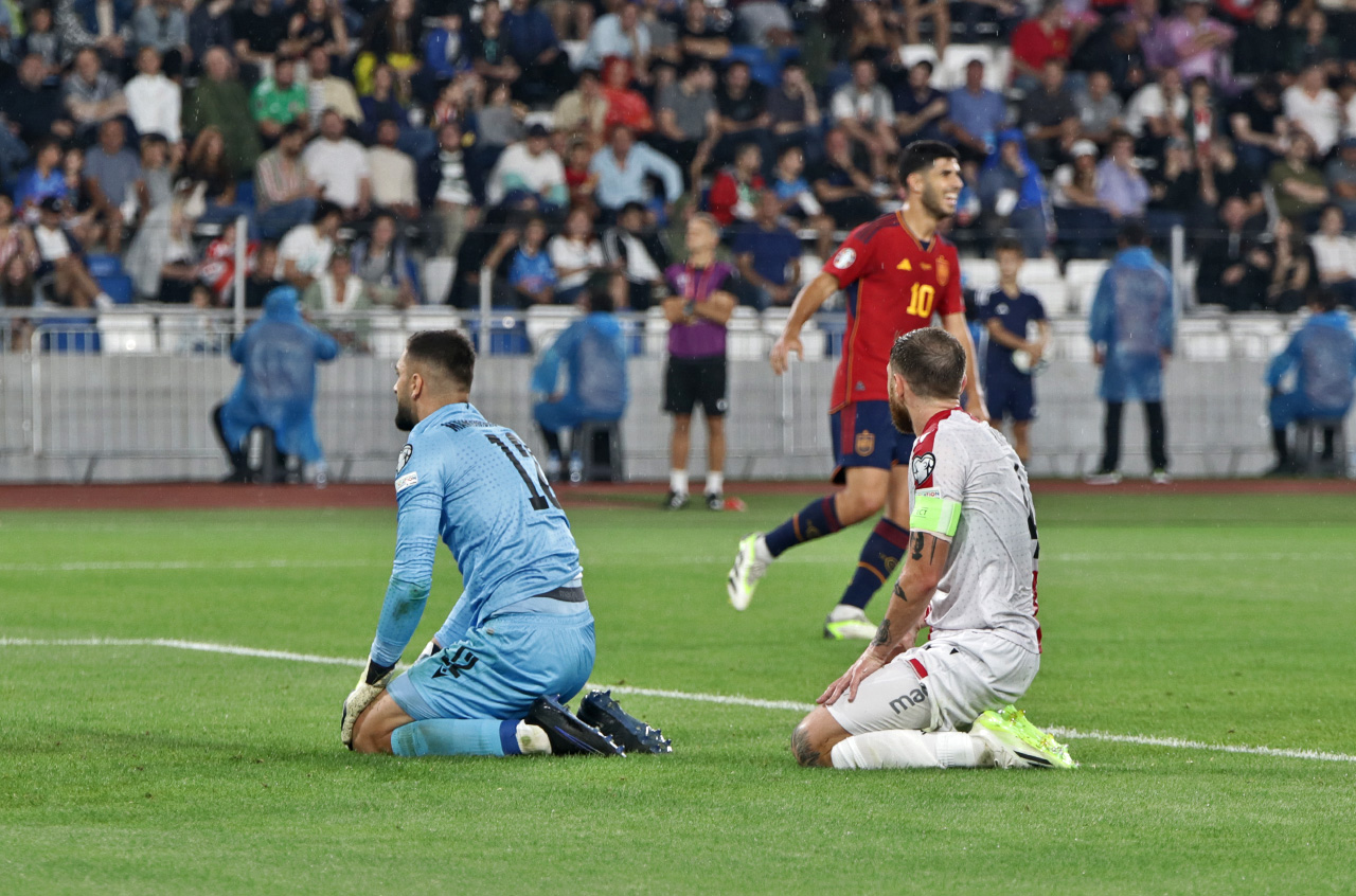 „დინამო არენაზე", დღეს, ესპანეთის ნაკრებმა, ქართველთა გუნდი წვიმის წვეთებთან ერთად მიწაზე დაუშვა და ბევრ კითხვაზე, საფიქრალი გაუჩინა. კითხვებზე, რომელიც საქართველოსა და ესპანეთის ნაკრებების შეხვედრის მსვლელობისას რიგითი გულშემატკივრიდან დაწყებული, ფეხბურთის სპეციალისტებით დასრულებული ალბათ, ყველას გაუჩნდა და ბუნებრივია, მათ შორის ვართ ჩვენც, მედიის წარმომადგენლები.