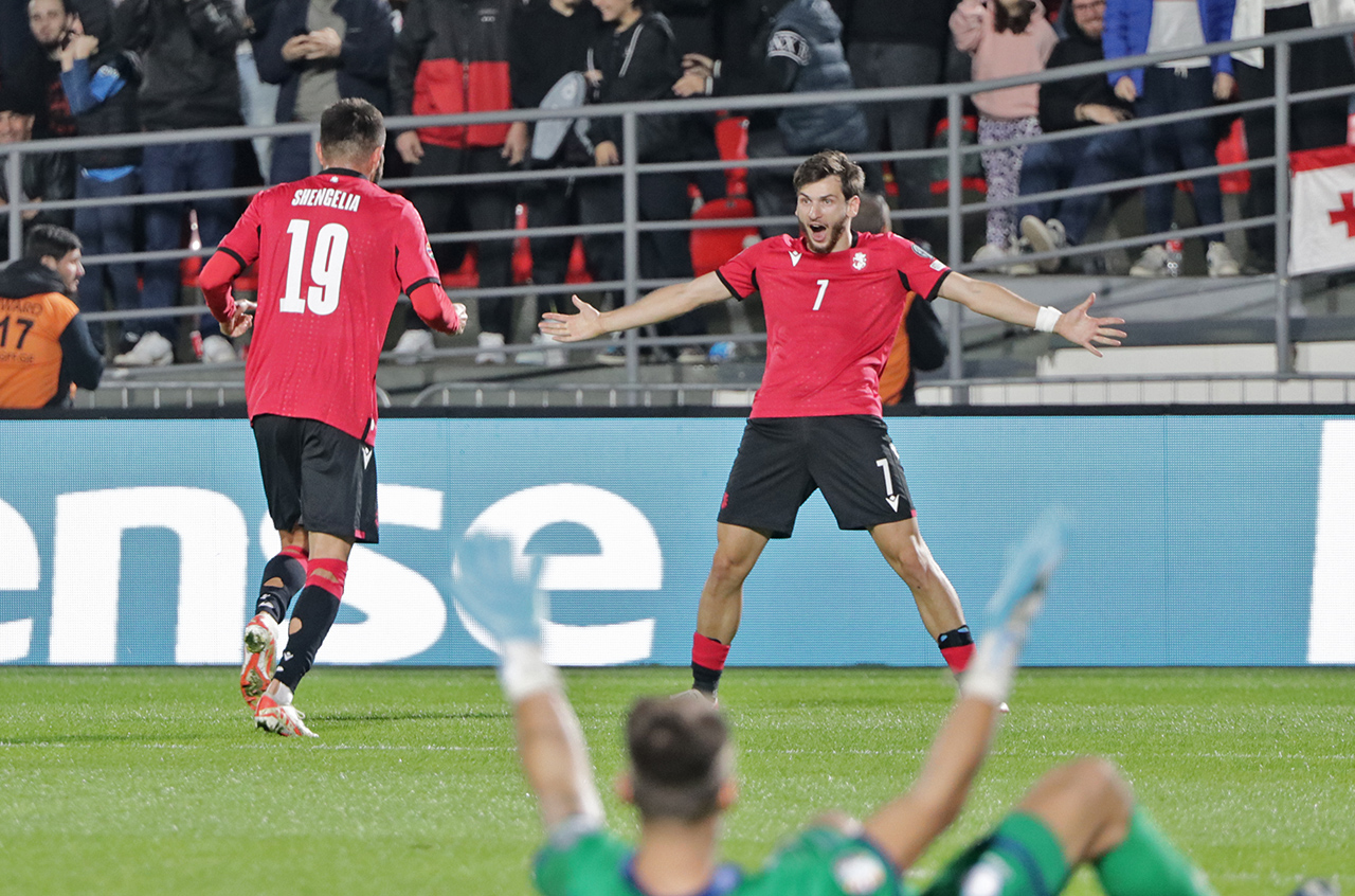 ასეა თუ ისე, დღეს, საქართველოს ნაკრებმა საკმაოდ უხერხულ მეტოქესთან (რომელსაც მწვრთნელი და ასისტენტი საქართველოს ეროვნული ნაკრების „ყოფილები" ჰყავს), დამაჯერებელი გამარჯვება 4-0 მოიპოვა. ჩვენი ნაკრები, სატურნირო ცხრილში, 7 ქულით მეოთხე ადგილზეა. ჯგუფს კი, 15 ქულით შოტლანდია ლიდერობს, რომელსაც ვილი სანიოლის გუნდი 16 ნოემბერს, „დინამო არენაზე" უმასპინძლებს, რომელსაც გლაზგოსგან განსხვავებით, მინდვრის დრენაჟი ჩინებული აქვს.