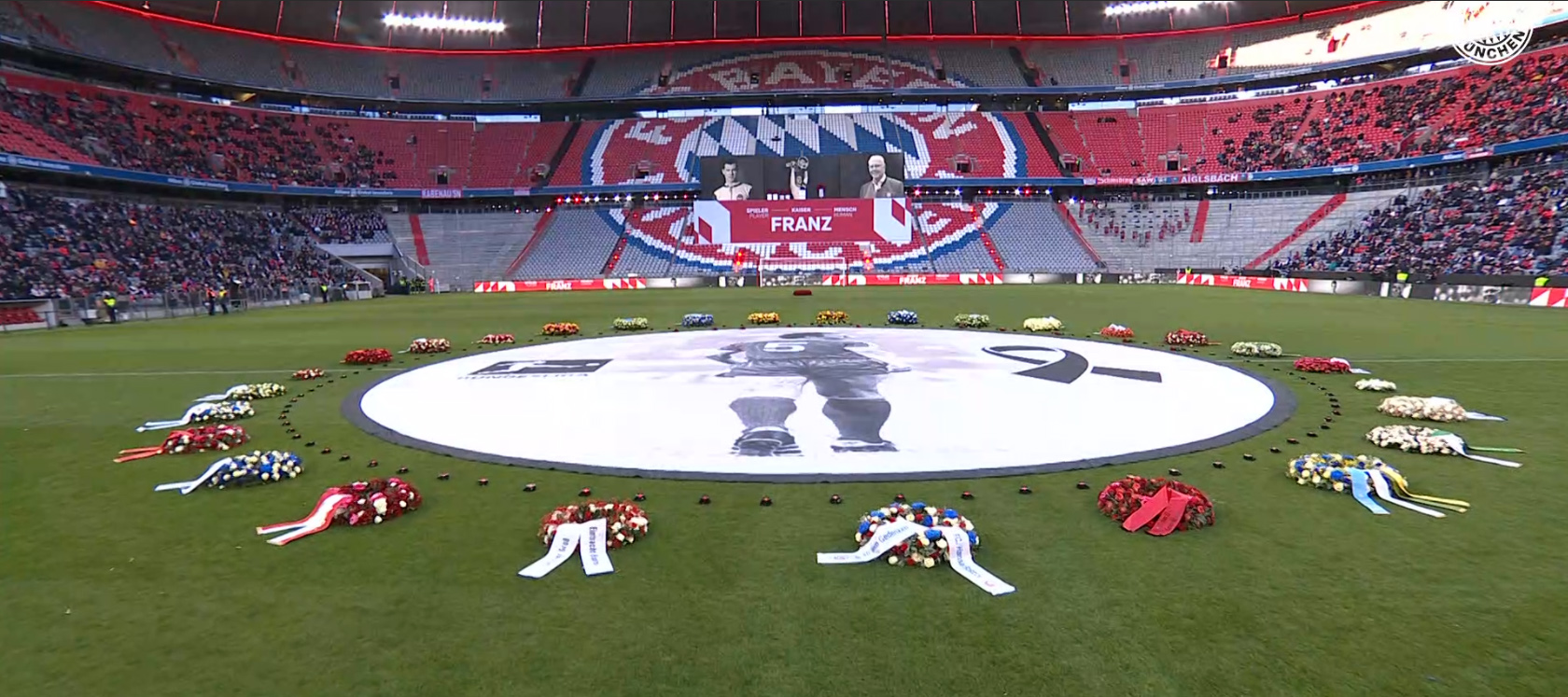5 დროშა, „ბაიერნის" სიმბოლიკით, რომელიც კლუბის ფანებს სხვადასხვა წლებში ტრიბუნებზე აუფრიალებიათ. წითელი ვარდებით დამზადებული რიცხვი „5". ბევრი თაიგული მინდვრის ცენტრში და უზარმაზარი მონიტორები, სადაც ფრანცის ცხოვრების ამსახველ კადრები გადიოდა.