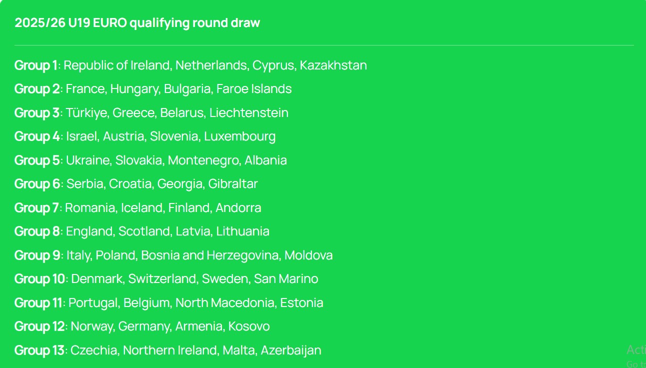 აქვე გეტყვით, რომ დღესვე გაიმართა 19-წლამდე ნაკრებების 2025-2026 წლების ევროპის ჩემპიონატის საკვალიფიკაციო ეტაპის წილისყრაც. ამჯერად საქართველო მე-6 ჯგუფში მოხვდა სერბეთის, ხორვატიისა და გიბრალტარის ნაკრებებთან ერთად. აღნიშნულ გათამაშებაში, მომდევნო ეტაპზე ჯგუფებიდან პირველ და მეორე ადგილებზე გასული გუნდები, ასევე, მესამე საუკეთესო გუნდი გავა. საკვალიფიკაციო ეტაპის თამაშები 2025 წლის 1-9 სექტემბერს ან, 6-14 ოქტომბერს, ან 10-18 ნოემბერს გაიმართება. აქაც, დეტალები მოგვიანებით დადგინდება. ფინალური ეტაპი კი 2026 წელს უელსში ჩატარდება.
