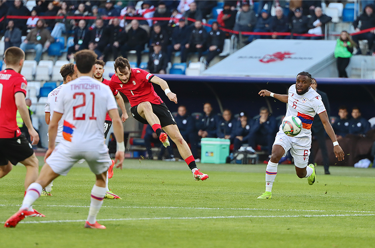 დღეს, საქართველოს ეროვნულმა ნაკრებმა, უეფა-ს ერთა ლიგის ფლეი-ოფის საკვალიფიკაციო შეხვედრაში სომხეთის ნაკრები კვლავ დაამარცხა. ამჯერად, 6-1, ორი შეხვედრის ჯამში 9-1 და დარჩა იმ ლიგაში, სადაც, წესით სადაც უნდა ვყოფილიყავით, ალბათ, 2024 წლის შემოდგომაზე, ცოტა მეტი, რომ გვეყოჩაღა.